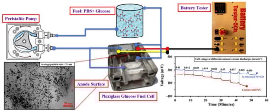- Do, U.P.; Seland, F.; Johannessen, E.A. A micro fuel cell for abiotical catalysis of glucose. J. Power Sources 2020, 478, 229032. [Google Scholar] [CrossRef]