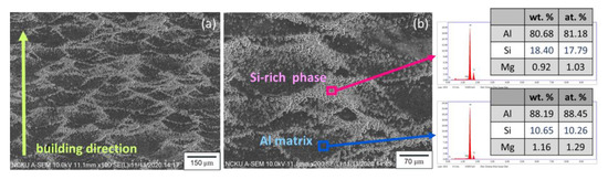 - Chen, K.-J.; Hung, F.-Y.; Lui, T.-S.; Tsai, C.-L. Improving the applicability of wear-resistant Al–10Si–0.5 Mg alloy obtained through selective laser melting with T6 treatment in high-temperature, and high-wear environments. J. Mater. Res. Technol. 2020, 9, 9242–9252. [Google Scholar] [CrossRef]