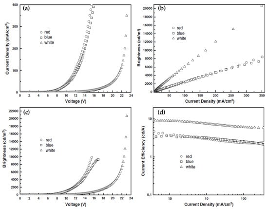 - Bin, J.K.; Lee, N.Y.; Lee, S.; Seo, B.; Yang, J.H.; Kim, J.; Yoon, S.Y.; Kang, I. Two stacked tandem white organic light-emitting diodes employing WO3 as a charge generation layer. Org. Light Emit. Mater. Devices 2016, 9941, 99411T. [Google Scholar]