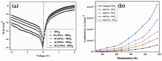 - Raja, M.; Chandrasekaran, J.; Balaji, M.; Kathirvel, P. Investigation of microstructural, optical and dc electrical properties of spin coated Al:WO3 thin films for n-Al:WO3/p-Si heterojunction diodes. Optik 2017, 145, 169–180. [Google Scholar] [CrossRef]