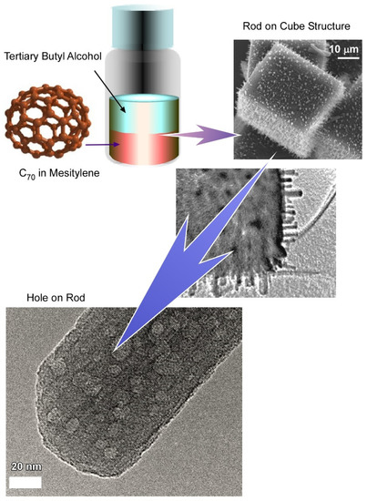 Preparation of hierarchically structured fullerene cubes and mesoporous fullerene C70 nanorods with crystalline pore walls. Reprinted with permission from Reference [136]. Copyright 2016 American Chemical Society.