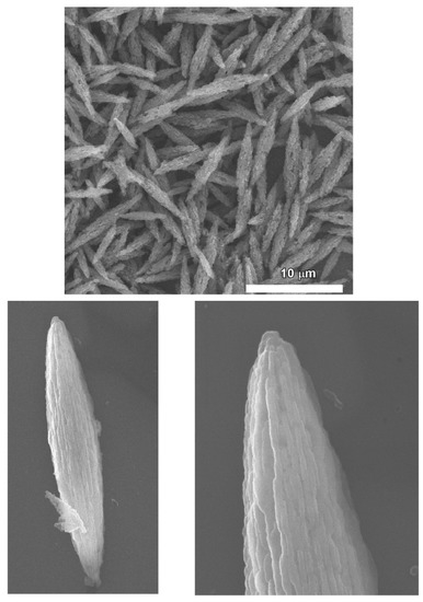 - Hsieh, C.-T.; Hsu, S.-H.; Maji, S.; Chahal, M.K.K.; Song, J.; Hill, J.P.; Ariga, K.; Shrestha, L.K. Post-assembly dimension-dependent face-selective etching of fullerene crystals. Mater. Horiz. 2019, 7, 787–795. [Google Scholar] [CrossRef]