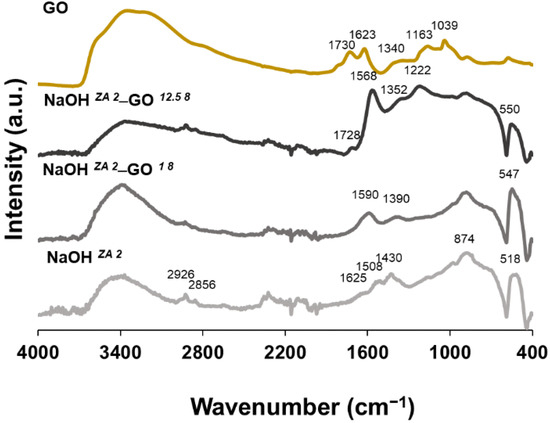| NaOH ZA 1–GO 14 | 36.3157 | 3.2429 | 5.1965 | 0.2422 |