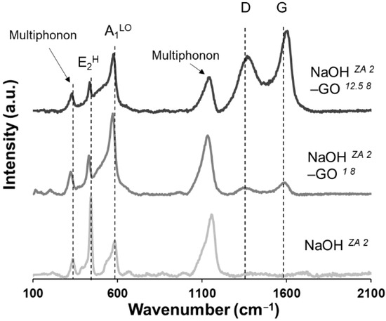 3.2. Effect of GO Concentration on ZnO Structures