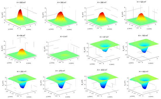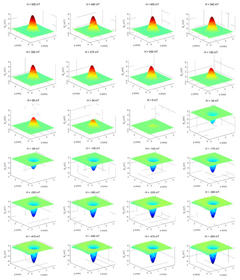 Magnetic maps of the sample NP0 in 3D, obtained directly from the maps in XY space from 500 mT to −500 mT.