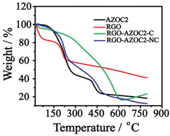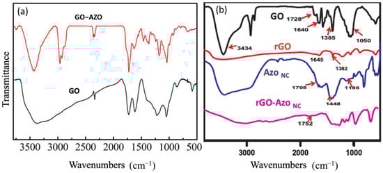 Novoselov et al. separated and characterized an atom-thick sp2-hybridized carbon nanosheet and defined it as “isolated graphene” in 2004 []. Since its discovery, this nanomaterial has propelled enormous scientific and technological interest due to its unique properties such as a large specific surface area, easy functionalization, controlled photoluminescence, high mechanical strength, chemical stability, and high electronic conductivity []. GO and GQDs are subsets of the graphene family which are usually derived from graphene by exfoliation reactions. The structures of graphene, GO nanosheets, and GQDs are shown in Figure 1. GDs (e.g., GO, reduced graphene oxide, GQDs) have proven to be effective coupling materials for many polymer nanocomposites because of their ideal material properties and dispersibility in polymer matrices []. The tight packing of sp2 carbon, their electronic conjugation, and π–π transitions demonstrate their use in various sensor and optoelectronic devices [,]. This review intends to highlight the properties of GDs as coupling agents for AZO-polymers.