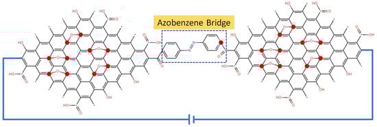 Covalent functionalization involves strong molecular bonding between GDs and azobenzenes, which inevitably results in partial damage of π-conjugated structures. However, strong chemical bonds at an interface facilitate precise control and modulation of electronic properties of the composite material, contributing to efficient charge or energy transfer and quantum effects [,]. Many GD-AZO composites synthesized by covalent functionalization develop non-covalent interactions after composite formation, significantly influencing the properties of the composites.