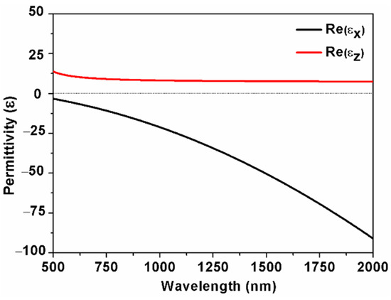 The effective permittivity calculated with EMT is plotted in Figure 2. The real part of the permittivity with x and z components show opposite signs for λ > 500 nm, which indicates that the alternating Ag/ZnO multilayered structure displays hyperbolic dispersion in this region. The modes in HMM cannot be directly excited due to the momentum mismatch. Therefore, a BK7 prism is used to couple the spatial light into the HMM structure and realize the match of the two wave-vectors [13].