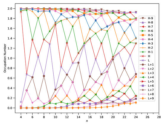 3.4. Occupation Numbers of Active TAO-Orbitals