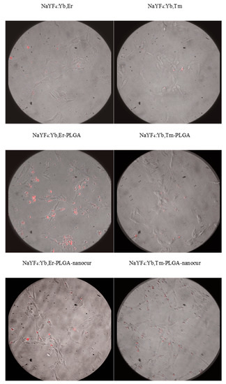 - Mancic, L.; Djukić-Vuković, A.; Dinić, I.; Nikolic, M.; Rabasovic, M.; Krmpot, A.J.; Costa, A.M.; Trisic, D.; Lazarevic, M.; Mojovic, L.; et al. NIR photo-driven upconversion in NaYF4:Yb,Er/PLGA particles for in vitro bioimaging of cancer cells. Mater. Sci. Eng. C 2018, 91, 597–605. [Google Scholar] [CrossRef]