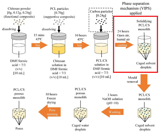 The fabrication steps of PCL/CS porous monoliths.