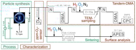 The subsequent sections divide the result of the gas-particle interaction by discussing the thermal sintering behavior and the particle size measurements by tandem DMA, followed by TEM image analysis and particle surface investigations by APES.