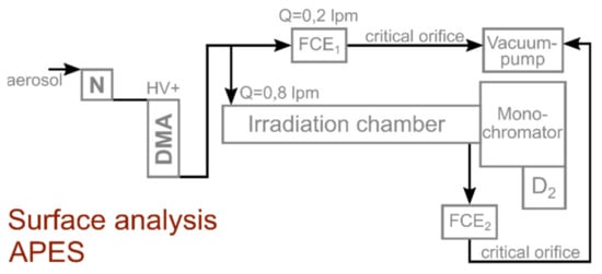- Röhrbein, J.; Weber, A.P. A system for on-line characterization of gas-borne particle surface properties based on their photoemission. J. Aerosol Sci. 2018, 120, 82–91. [Google Scholar] [CrossRef]