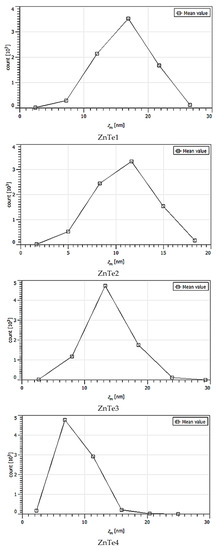 For all fabricated samples, the substrate-target distance, working pressure, substrate temperature, and applied power were maintained constant at 10 cm, 0.86 Pa, 250 °C, and 100 W, respectively, and the deposition time varied at 5, 10, 15, and 20 min. For ease of discussion, in the whole manuscript, the samples were denoted ZnTe1 (5 min), ZnTe2 (10 min), ZnTe3 (15 min), and ZnTe4 (20 min).