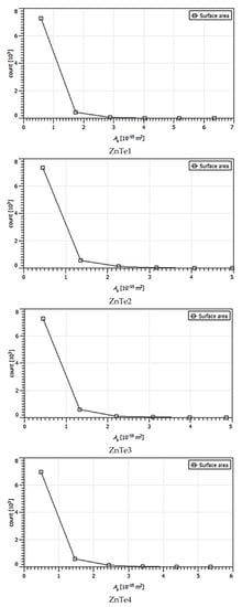 Surface area statistic variation of ZnTe1,2,3,4 thin films.