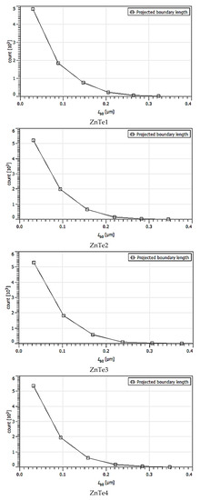 Projected boundary length statistic variation of ZnTe1,2,3,4 thin films.