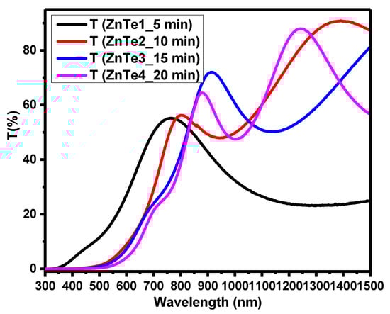 UV-Vis transmission spectroscopy spectra of ZnTe thin films with different thicknesses.