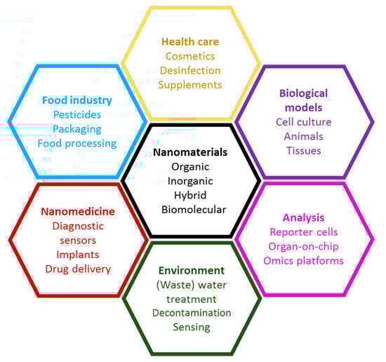 “Biology and Medicine” is a Section of Nanomaterials publishing original articles, reviews, and commentaries on any aspect related to the interaction of nanomaterials with biology. Nanomaterials have raised interest because their size-dependent physical and chemical properties improve the quality of various commercial products. Already in the late 1990s, concepts for the use of nanomaterials for medical purposes were developed [1]. One idea was to construct nanorobots to destroy caries-causing bacteria and remove blemishes on infected teeth. Although many of the planned nanoconstructs could not be realized, research on medical applications of nanomaterials continued. In 2004, the term “nanomedicine”, aiming to improve diagnosis and treatment in medicine, was defined by the European Science Foundation and in 2006 by the United States National Institutes of Health. Concerns about the potentially harmful effects of nanomaterials were stimulated by studies reporting an increased morbidity and hospitalization rate in regions with high concentrations of ultrafine particles in the air. “Nanotoxicology” summarizes the adverse effects of nanoparticle exposure [2]. Nanosafety combines research on toxicology, ecotoxicology, exposure assessment, mechanisms of interaction, risk assessment and standardization of production, characterization, and biological assessment.