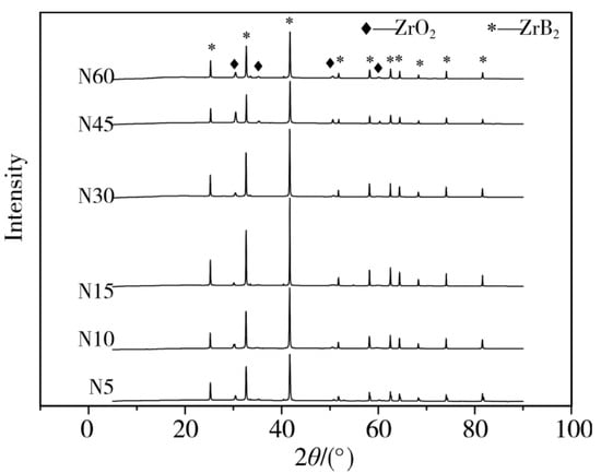 XRD patterns of ZrB2 powders prepared with different content of NaB4O7 [].