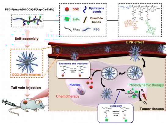 - Guo, X.; Jin, H.; Lo, P.-C. Encapsulating an acid-activatable phthalocyanine–doxorubicin conjugate and the hypoxia-sensitive tirapazamine in polymeric micelles for multimodal cancer therapy. Biomater. Sci. 2021, 9, 4936–4951. [Google Scholar] [CrossRef]