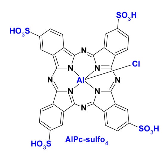 - Darwish, W.M.; Al-Ashkar, E.A. Synthesis, photochemical and photophysical properties of a sulfo-pegylated zinc-phthalocyanine star polymer potential for biomedical applications. Adv. Appl. Sci. 2015, 9, 126–134. [Google Scholar]