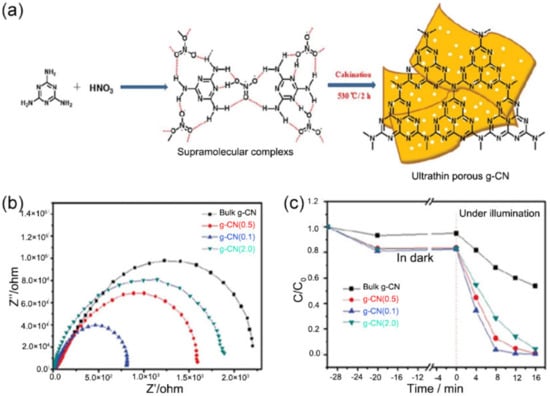 - Dong, F.; Li, Y.; Wang, Z.; Ho, W.-K. Enhanced Visible Light Photocatalytic Activity and Oxidation Ability of Porous Graphene-Like g-C3N4 Nanosheets via Thermal Exfoliation. Appl. Surf. Sci. 2015, 358, 393–403. [Google Scholar] [CrossRef]