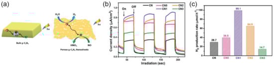 - Deng, P.; Hong, W.; Cheng, Z.; Zhang, L.; Hou, Y. Facile Fabrication of Nickel/Porous g-C3N4 by Using Carbon Dot as Template for Enhanced Photocatalytic Hydrogen Production. Int. J. Hydrog. Energy 2020, 45, 33543–33551. [Google Scholar] [CrossRef]