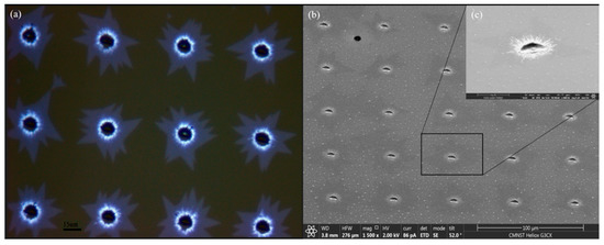 2.1. Preparation of Laser Drilling for Substrates Containing Periodic Structures