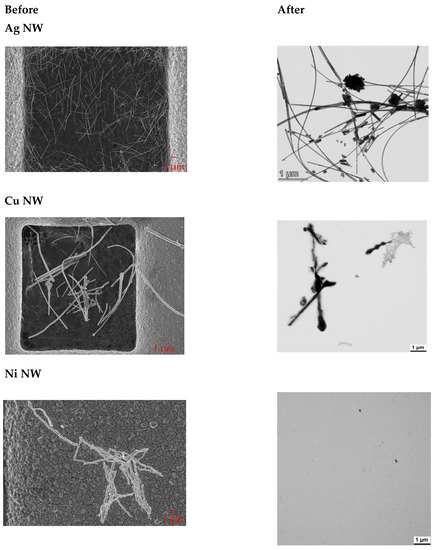 - Felix, L.P.; Perez, J.E.; Contreras, M.F.; Ravasi, T.; Kosel, J. Cytotoxic effects of nickel nanowires in human fibroblasts. Toxicol. Rep. 2016, 3, 373–380. [Google Scholar] [CrossRef] [Green Version]