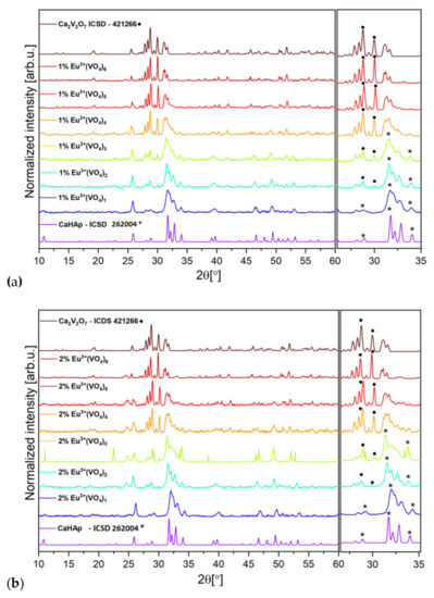 - Escudero, A.; Calvo, M.E.; Rivera-ferna, S. Microwave-assisted synthesis of biocompatible europium-doped calcium hydroxyapatite and fluoroapatite luminescent nanospindles functionalized with poly(acrylic acid). Langmuir 2013, 29, 1985–1994. [Google Scholar] [CrossRef] [PubMed]