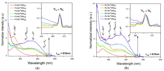 - Wujczyk, M.; Watras, A.; Wiglusz, R.J. The study of the influence of PH on the structural and spectroscopic properties of nanocrystalline Eu3+ ion-doped yttrium orthovanadate. Dalton Trans. 2021, 50, 3724–3733. [Google Scholar] [CrossRef]