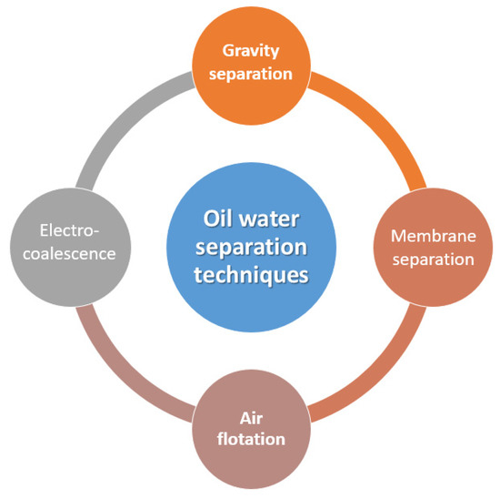 The traditional and most frequently used methods for oil/water mixture separation are shown in Figure 2. However, the applications of such methods are limited with their drawbacks such as low separation efficiency, high cost, and secondary pollution. As a result, research studies were conducted to find more suitable methods that overcome these drawbacks. Among the mentioned separation methods, gravitational separation has merits in terms of treated volume; however, it is inefficient in the isolation of emulsified mixtures. Moreover, membrane filtration techniques are considered the most efficient method in the treatment of oil/water mixtures owing to their simple operational process, but their efficiency is greatly limited as the separation of stable emulsions requires small-sized pores. In addition, membranes are limited with their high cost, fouling, and low recyclability, which narrow their application in emulsion separation. Thus, the development of novel materials and methods with superior selectivity, excellent stability, and high separation efficiency became crucial for an effective separation of oil/water mixtures [66].