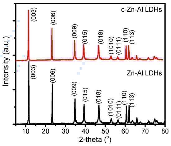 XRD patterns of Zn-Al LDHs and c-Zn-Al LDHs.