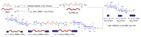 Synthesis of Glcm-b-DMSn-b-Glcm (m = 1–3).