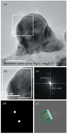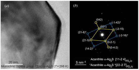 - Sadovnikov, S.I.; Gerasimov, E.Y. Direct TEM observation of the “acanthite α-Ag2S -argentite β-Ag2S” phase transition in a silver sulfide nanoparticle. Nanoscale Adv. 2019, 1, 1581–1588. [Google Scholar] [CrossRef]