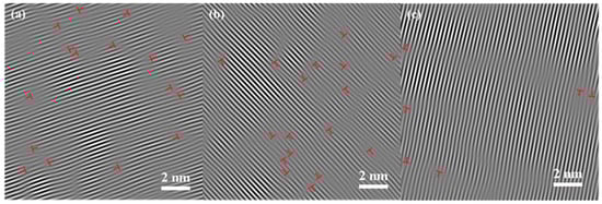 (a) (), (b) (), (c) (110) inverse Fourier transform images in the single crystal region.