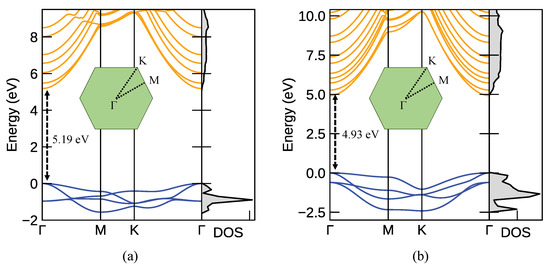 We establish at least a 15 Å vacuum between the monolayers to avoid any non-physical interactions between layers. Moreover, the exfoliation energy is calculated as the ratio of the difference in bulk and monolayer ground state energies to the surface area of the bulks [62,63]. We used the sumo code to plot band structures and Density of States (DOS) [64].