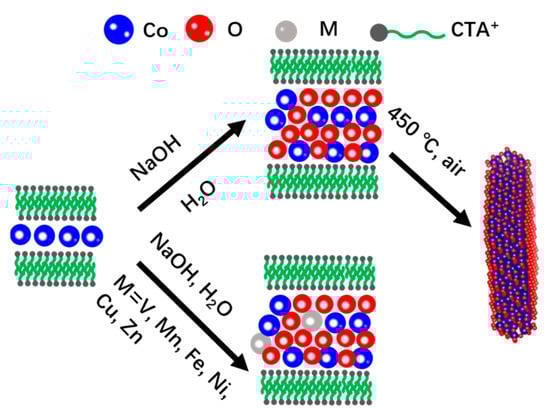 Currently demonstrated electrocatalysts for OER are Ru/Ir-based materials [4], which are costly to realize the practical applications. Developing low-cost, efficient electrocatalysts is a potential approach to meet the demand of various applications [5,6]. Transition metal-based catalysts are widely investigated for OER, including oxides [5], phosphides [7], selenides [8], etc. Co-based nanostructures show high catalytic activity and stability in OER, demonstrated by numerous investigations [9,10,11]. Unfortunately, these emerging catalysts still suffer insufficient development, especially in those novel and facile approaches for preparing desired electrocatalysts of such materials with well-defined nanostructures. Therefore, exploring new methods for synthesizing uniform nanomaterials is significant for a wide range of applications and for developing modern synthetic methodology.