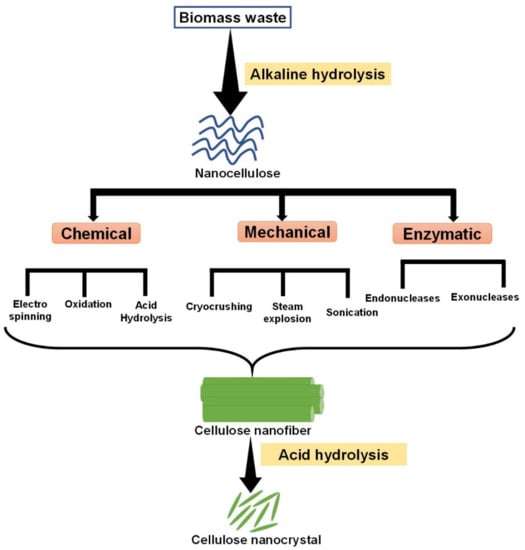 - Brinchi, L.; Cotana, F.; Fortunati, E.; Kenny, J.M. Production of Nanocrystalline Cellulose from Lignocellulosic Biomass: Technology and Applications. Carbohydr. Polym. 2013, 94, 154–169. [Google Scholar] [CrossRef] [PubMed]