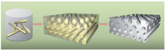 The schematic illustration of the in situ directional growth of spindle TiO2 along the cellulose microfibers. Reprinted from [156]. Copyright 2015, with permission from Elsevier Ltd.