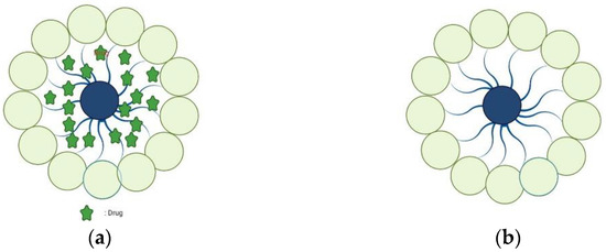 Blank polymer micelles (a) and drug-loaded polymer micelles (b).