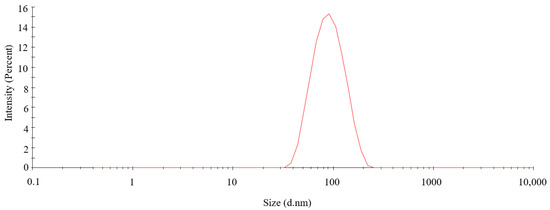 The particle size distribution curve and zeta potential of biosynthetic PtNPs are shown in Figure 3 and Figure 4, respectively. The particle size distribution of PtNPs was moderate, and the particles with hydrodynamic diameter of about 100 nm were in the majority. The specific analysis result of Marvin Nano ZS software was that the average particle size of PtNPs was 84.67 ± 5.28 nm, and the PDI value was 0.160, which indicated that synthesized nanoparticles were well monodispersed.