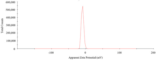 As shown in Figure 4, the zeta potential of PtNPs was −8.64 mV and the peak area intensity was 100%. A negative zeta potential suggested that PtNPs were covered by negatively charged biomolecules, which generated electrostatic repulsion between nanoparticles and reduced the aggregation of nanoparticles, thus increasing the stability of PtNPs [26].