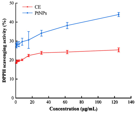 DPPH scavenging activity of PtNPs and CE.