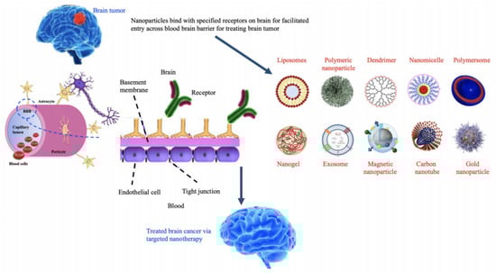 A brain tumor can affect both adults and children and is caused by various cell types that give rise to tumors with varying degrees of malignancy and invasiveness [,]. Brain tumors are a diverse group of neoplasms that are typically classified as benign or malignant. The leading causes of brain tumor malignancy are thought to be uncontrolled proliferation and tissue infiltration of dedifferentiated cells caused by harmful chemical, physical, and biological exposures []. CNS tumors are the most common solid tumor and the leading cause of death from cancer in children, adolescents, and young adults, with an incidence of 1 to 5 cases per 100,000 people []. Surgery, radiation, and systemic chemotherapy are common treatments for brain tumors, but they are associated with a high recurrence rate and a poor prognosis. Intra-arterial administration of anti-cancer drugs has been considered a viable alternative to intravenous and oral administration in recent decades []. Liposomes, nanoparticles, drug-loaded micro bubbles, and magnetic attraction of cells are examples of these strategies [].