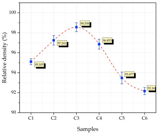 The composite samples’ relative density graph.