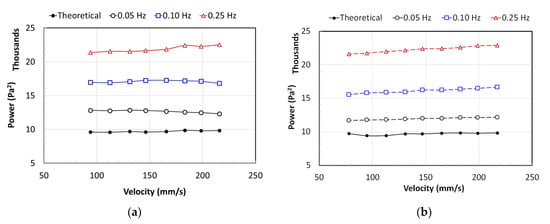 Power evaluated using Equation (3) while (a) increasing velocity and (b) decreasing velocity.