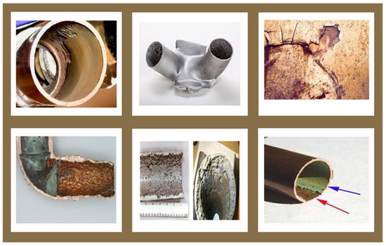 Several theories relating to tribology and polymer tribology have been developed [13,39,40]. Many researchers have explored the erosion process, and various analyses of erosion phenomena have been proposed that could explain the activation of the process and the degradation of metallic surfaces/tubing/piping, as seen in Figure 2. Several models and tests have been developed to aid in understanding the erosion process, and modifications to products have been discovered in some cases. There are both limited and complex theoretical and experimental models on polymer composites. The majority of them explain scratch wear as a result of strikes by solid erodents that are transferred by air or by a variety of liquids present in the working environment.