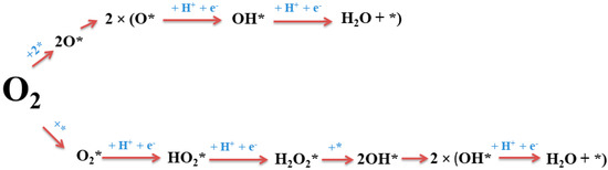 Possible oxygen reduction mechanisms, * refers to adsorbed species.