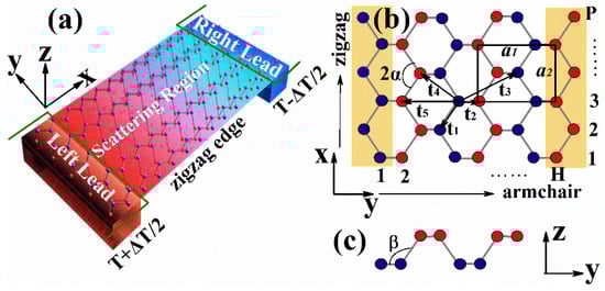 - Ildarabadi, F.; Farghadan, R. Spin-thermoelectric transport in nonuniform strained zigzag graphene nanoribbons. Phys. Rev.B 2021, 103, 115424. [Google Scholar] [CrossRef]